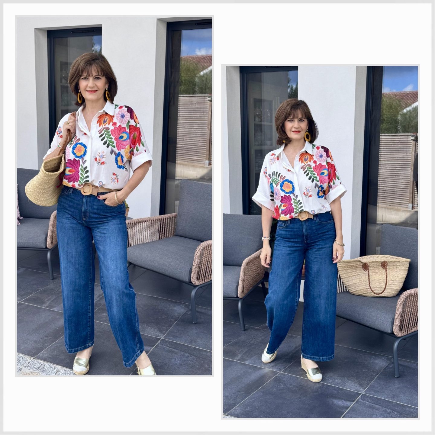 D’ailleurs, en 2025, le jean Wide Leg est partout que ce soit dans les collections de créateurs comme dans les enseignes plus accessibles. Il s’impose comme le modèle idéal à porter en toutes saisons grâce à sa coupe ample qui laisse respirer la peau. Polyvalent, flatteur, facile à porter, il est devenu un basique moderne et intemporel, parfait à tout âge y compris après 50 ans.