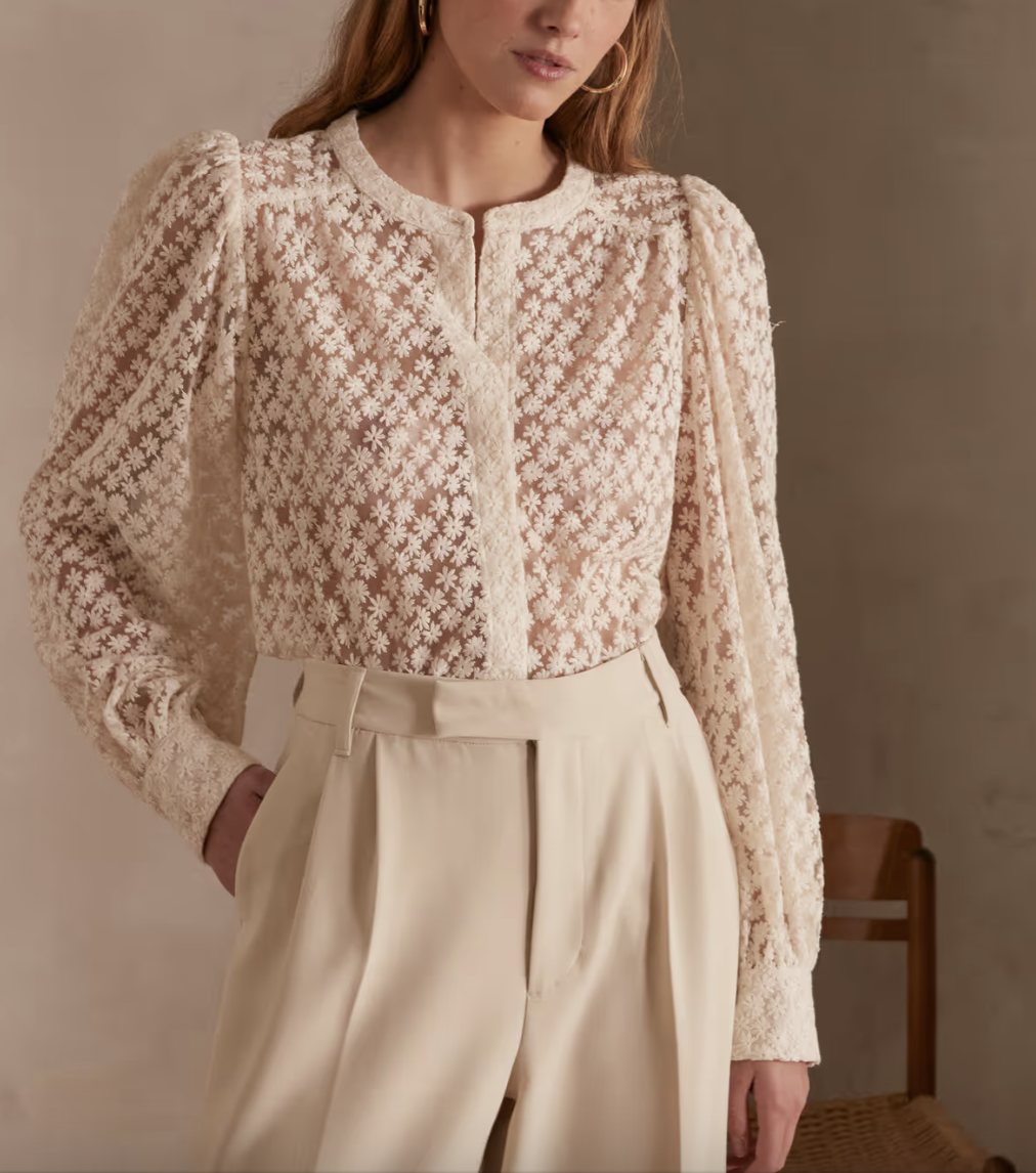 Chez Maison 123 : La chemise Selene en coton avec détail volanté à porter avec un jean taille haute et le chemisier brodé Camomille pour une allure romantique,