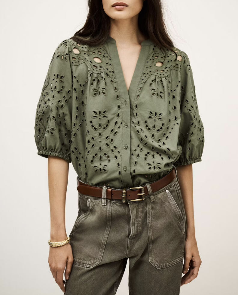 Chez Bash, la veste Meredith, la chemise kaki broderie anglaise Béatrice.