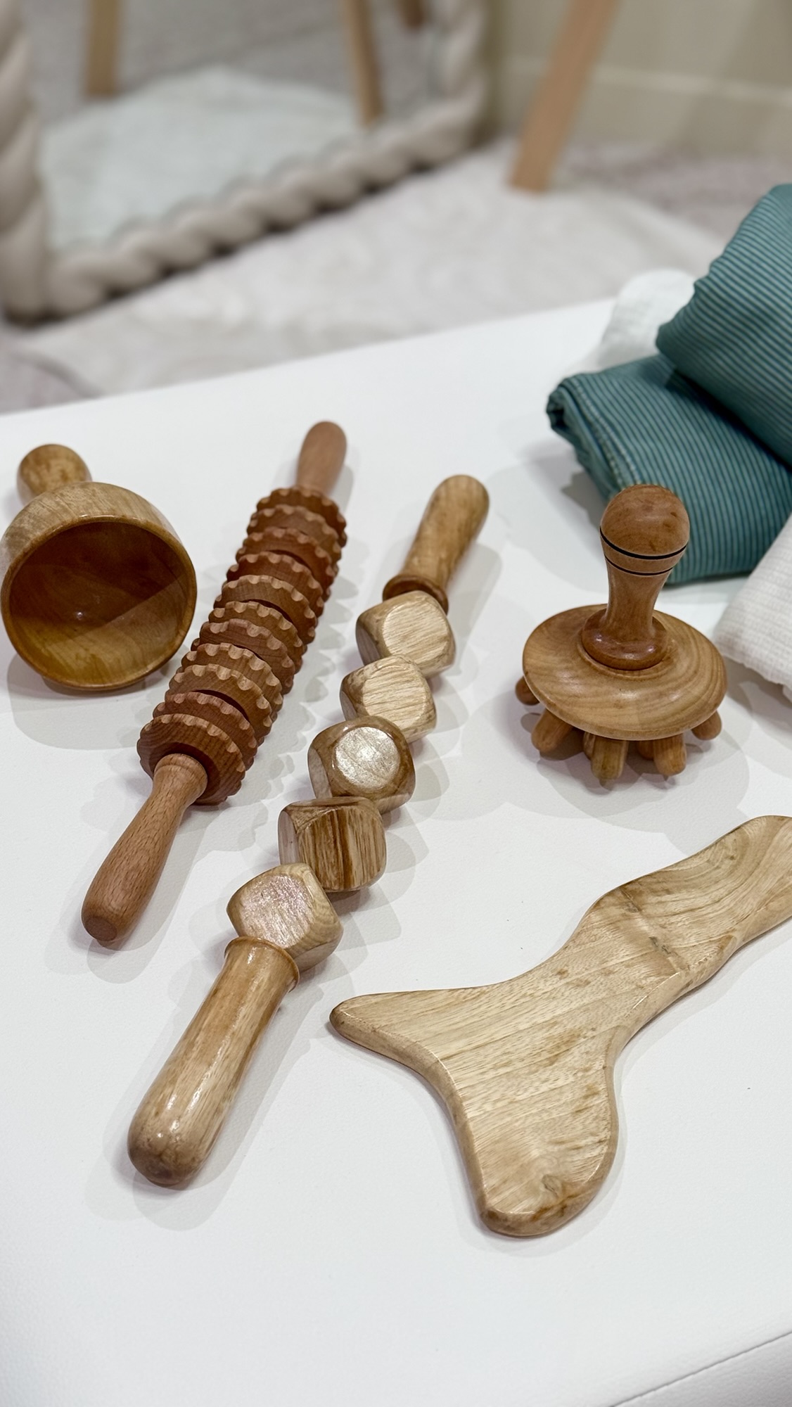 La madérothérapie est un soin de plus en plus prisé. Cette technique venue de Colombie utilise des instruments en bois aux formes variées (rouleaux, ventouses, champignons) pour stimuler la peau et les tissus en profondeur.