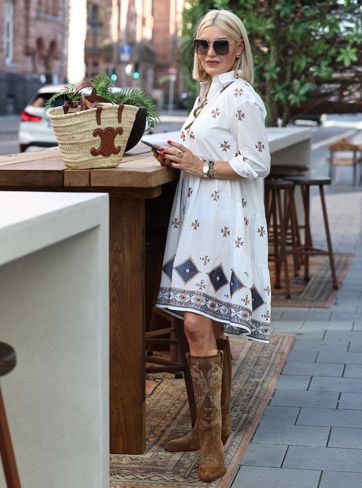 La robe chemise est l’une des pièces les plus polyvalentes qui soient : elle crée immédiatement une ligne verticale qui allonge la silhouette, apporte de la structure et permet de jouer sur les volumes. Pour une allure raffinée après 50 ans, on privilégie les tissus fluides mais suffisamment denses pour accompagner le mouvement sans trop dévoiler : le lyocell, le lin, la viscose texturée ou la popeline premium.