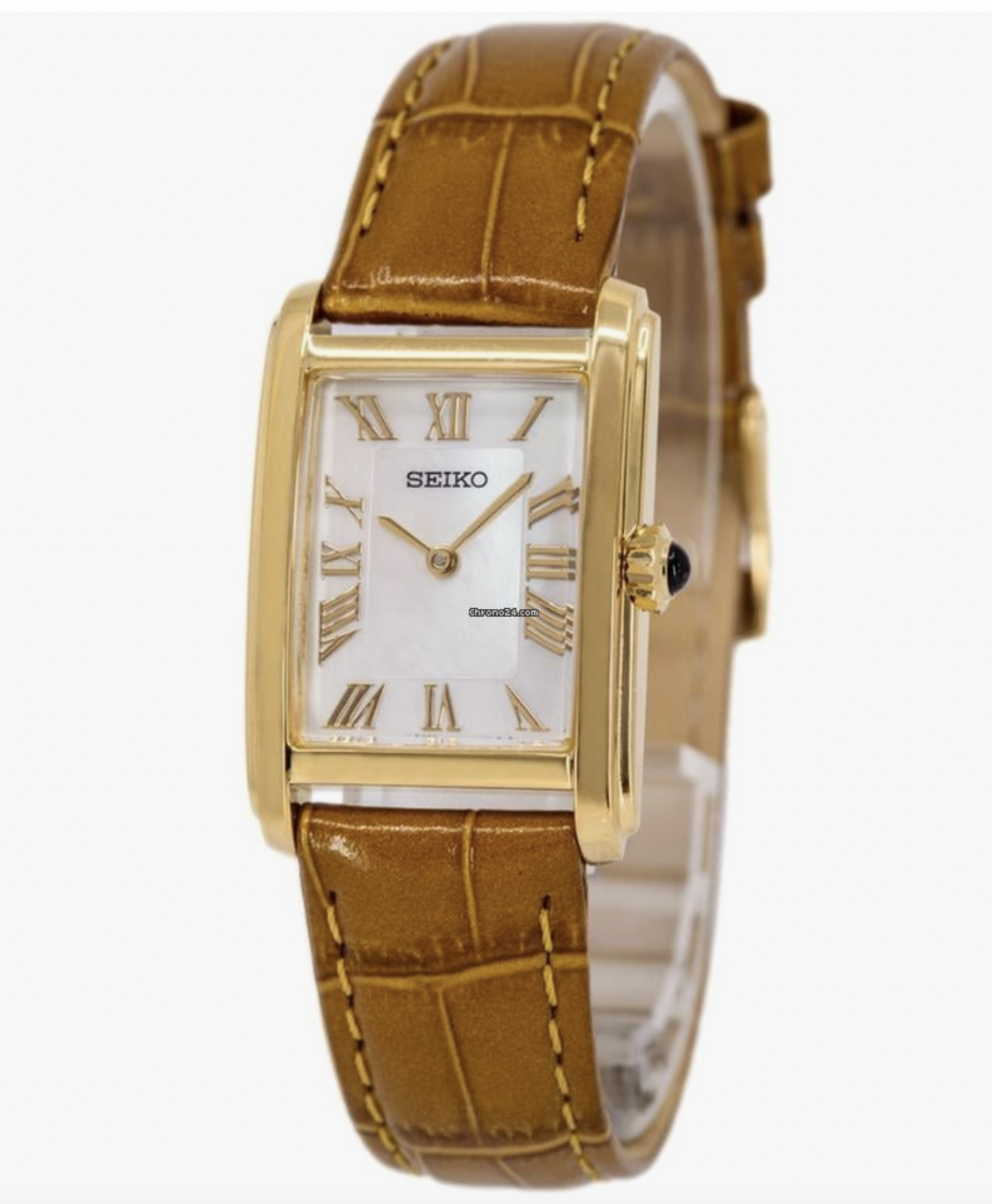 Le modèle Seiko ClassicDonna SWR100P1, boîtier en acier fond nacre blanche et bracelet en cuir marron façon croco est mon coup de cœur.