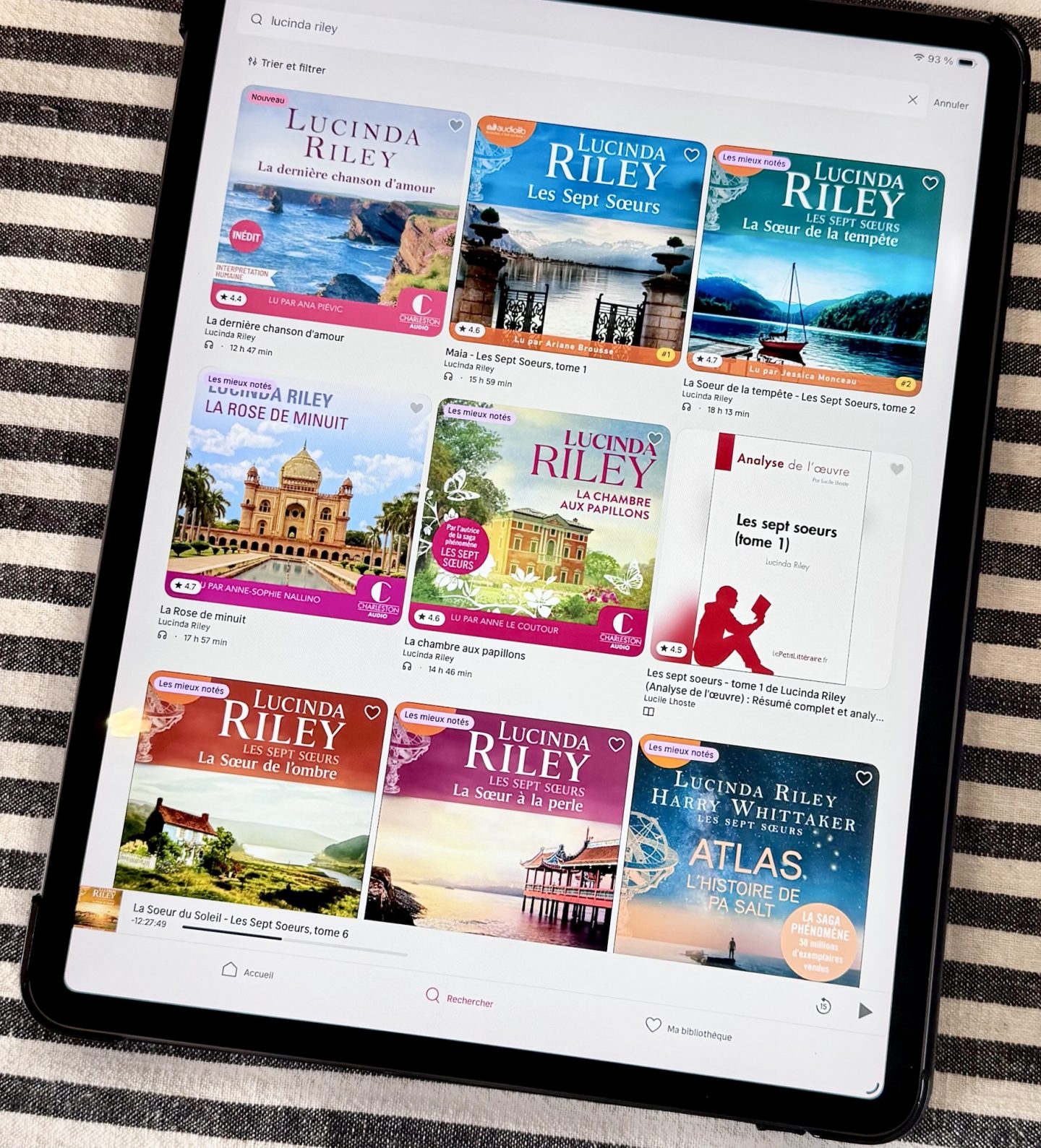 Il existe des lectures qui surgissent dans votre vie sans prévenir, qui s’immiscent dans votre routine et finissent par l’enrichir au-delà de toute attente. C’est exactement ce qui m’est arrivée lorsque j’ai décidé de tester Nextory, une application dont je vous ai déjà parlé dans un précédent article. Je cherchais simplement une manière plus flexible de lire au quotidien et, grâce à des suggestions, je me suis laissée tenter par cette saga littéraire dont j’avais vaguement entendue parler : Les sept soeurs de Lucinda Riley. Résultat : 8 tomes qui m’ont totalement conquises.